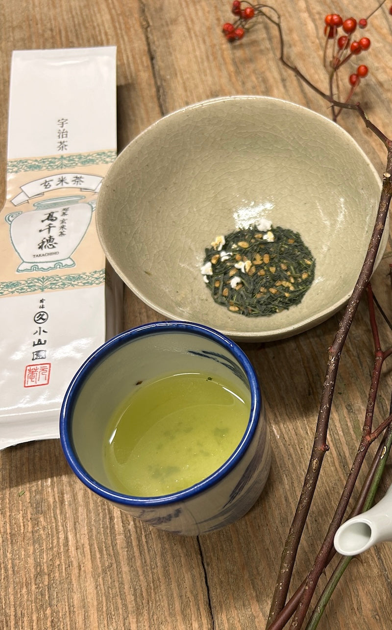 There are various stories about the origins of Genmaicha. One is that before the Second World War, a tea merchant in Kyoto thought it would be a shame to waste the mochi (rice cake) crumbs that were produced during the New Year ceremony, so he roasted them and mixed them with the tea leaves. Another is that in vegetarian cuisine, the crunchy rice grains that remained in the pot after cooking rice were added to the tea.