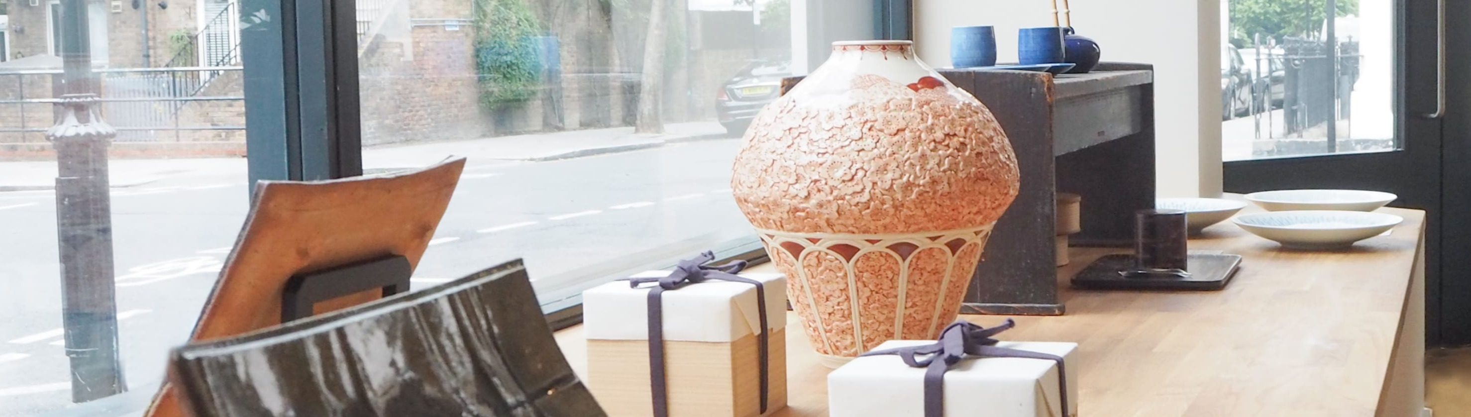 On her regular travels to Japan Keiko has visited numerous potters and kiln villages, talked and discovered, and re-visted, so that many of the vessels she has now been able to present at Talbot Road are the result of close conversations with artists, or an artist’s foundation. You can find out more information about individual ceramic pieces here.