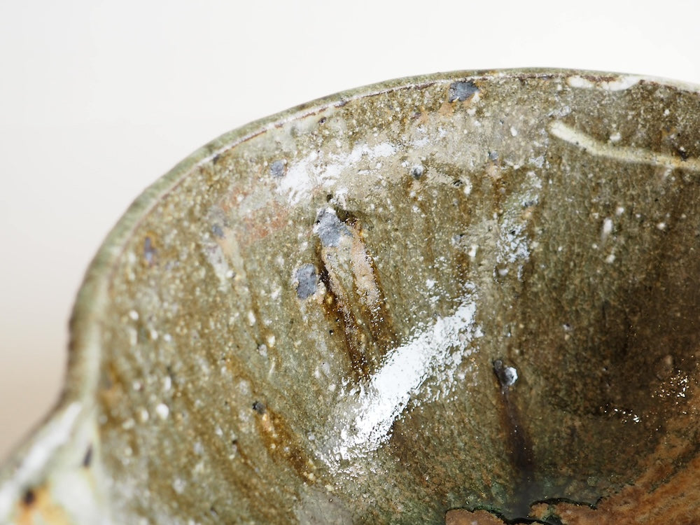 This handcrafted katakuchi pouring vessel by Japanese ceramicist Keiji Tsuruno embodies the rustic elegance of Mashiko pottery. Born in 1967 and based in Tochigi Prefecture’s renowned ceramic hub, Tsuruno has been creating work since 1994, crafting his own clay from locally dug soil. Formed on a traditional kicking wheel and fired in a wood kiln, each piece carries the natural, organic textures and subtle greenish-brown tones of ash glazing—enhanced by kiln-born variations and speckles. The slightly irregular lip and spout reflect Tsuruno’s philosophy that the true master of ceramics is not the potter but the fire itself, celebrating the beauty of unpredictable transformation.