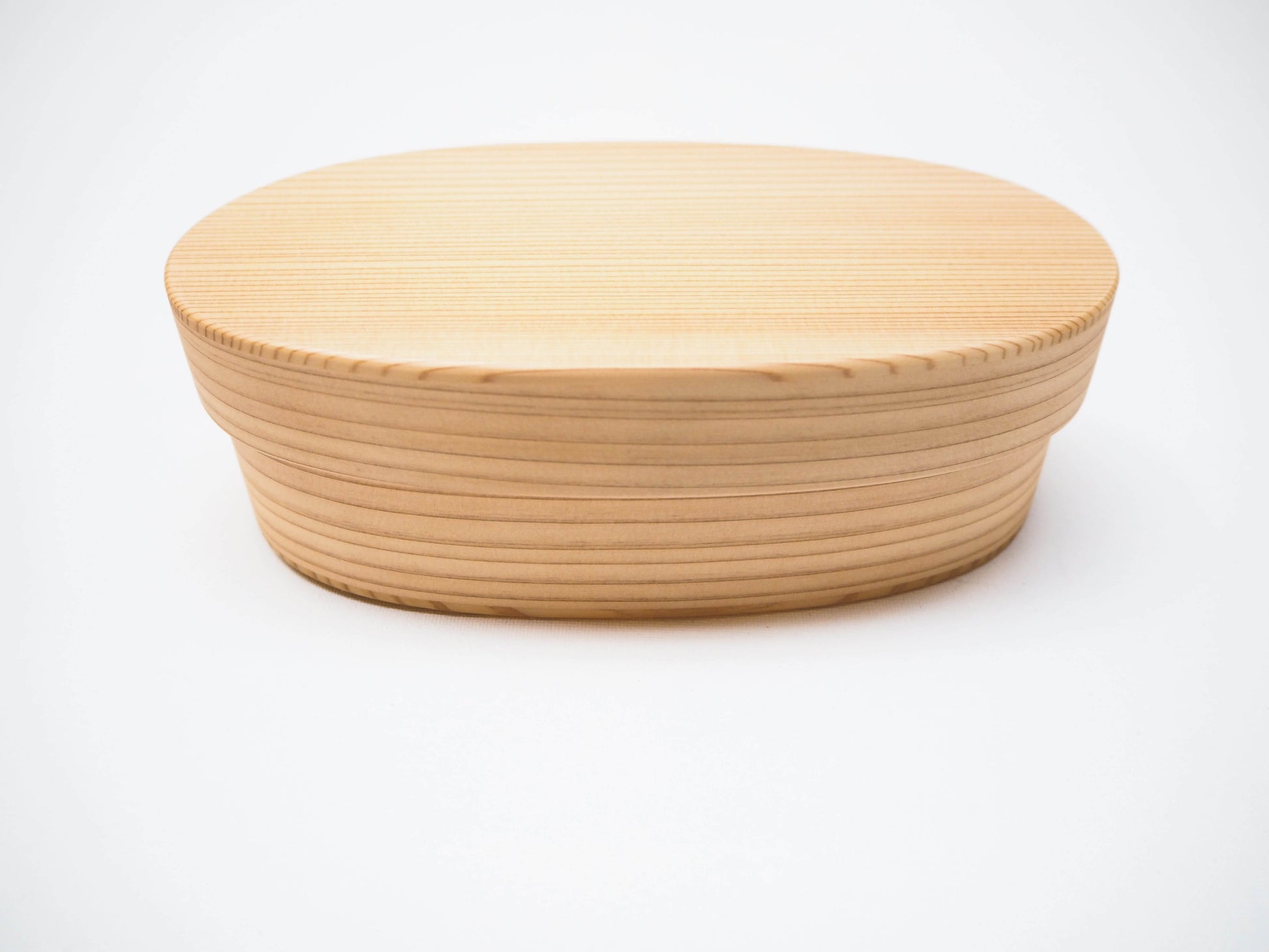 Magewappa is a way of steam bending wood than has been designated one of Japans Traditional Crafts by the Association for the Promotion of Traditional Craft Industries. This labour-intensive process involves softening planks of Cedar (sugi) before forming them into round shapes and drying them. Magewappa is notable for the light colour of the wood, and the straight grain lines that can be seen around the bento boxes.
