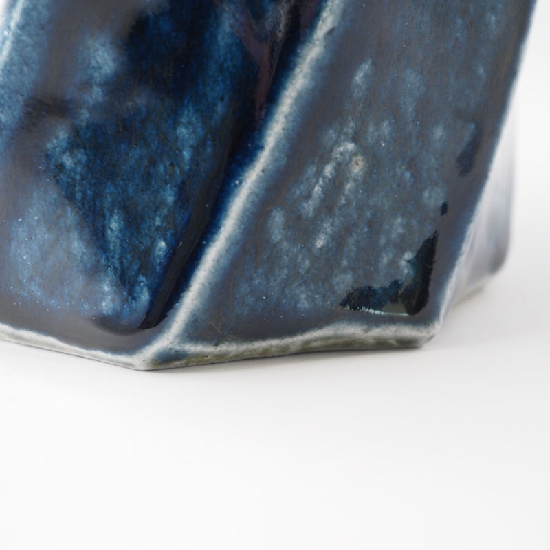Created by third-generation Mashiko potter Tomoo Hamada, this vase features an organic shape and a rustic surface with almost geometric and poignant slopes, achieved through the traditional shioyaki (salt-firing) technique. During firing, salt reacts with the clay, creating a unique, semi-matte glaze with unpredictable variations, ensuring each piece is one of a kind.