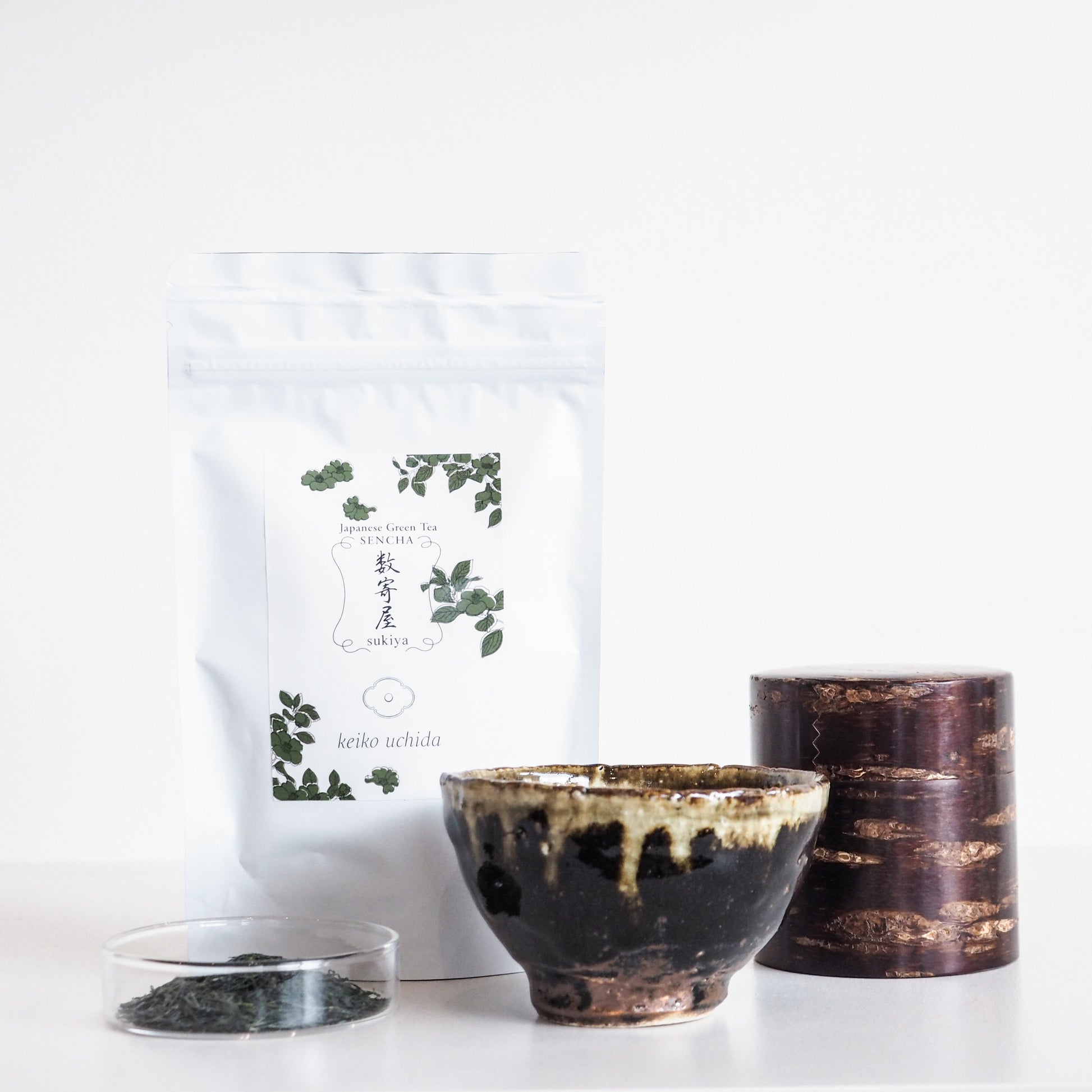 Accompanying the cup is a package of Sukiya Sencha, an artisanal green tea grown in the misty hills of Yame. Known for its mellow umami and clean finish, this sencha can be enjoyed hot or cold, making it a versatile companion for moments of calm throughout the year.
