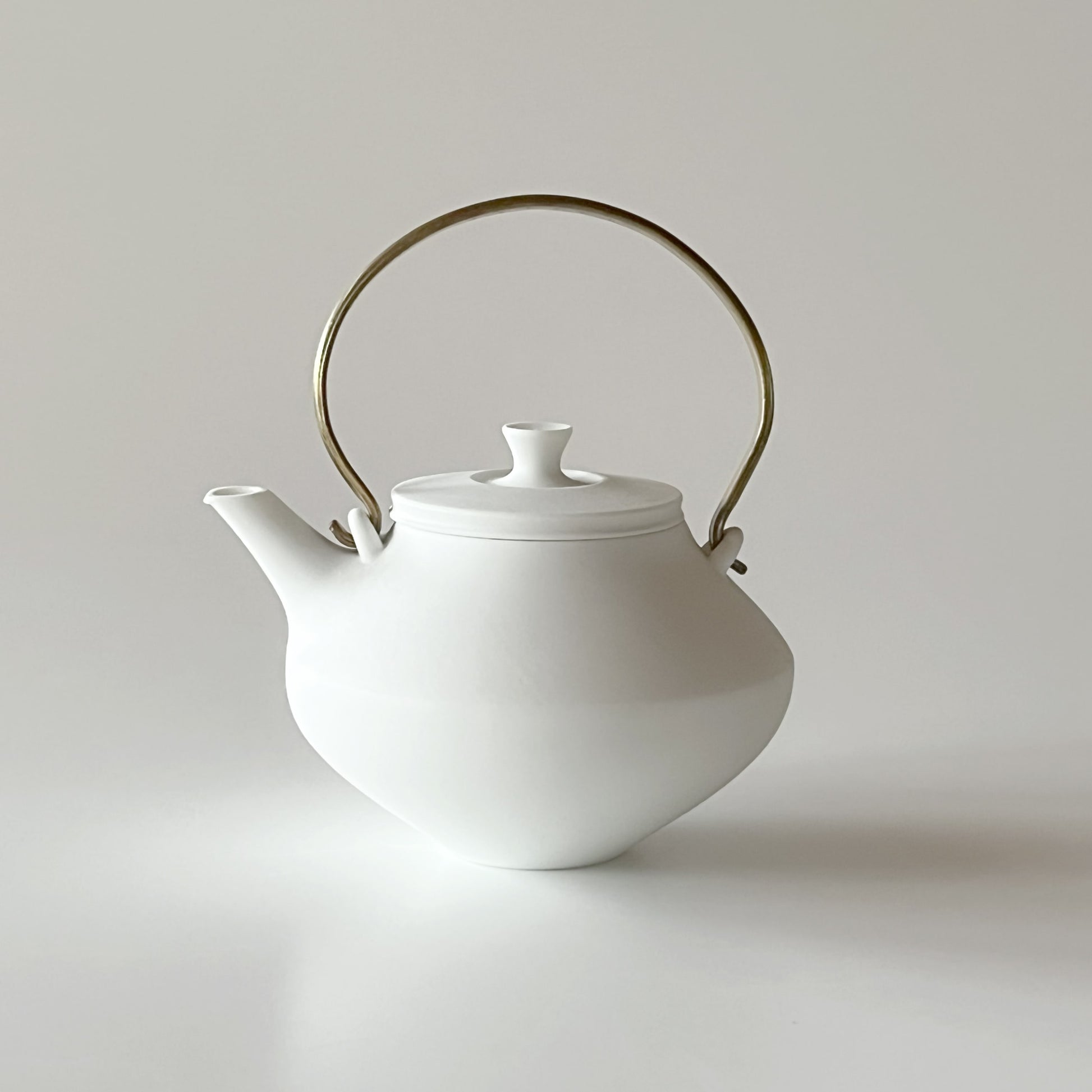 This handmade brass-handle dobin teapot has a quiet confidence, defined by a single, clean line running across the body to emphasise its harmonious proportions. The almost flat lid enhances its sleek finish, and the integrated ceramic strainer ensures the flavour of your tea remains un-compromised.